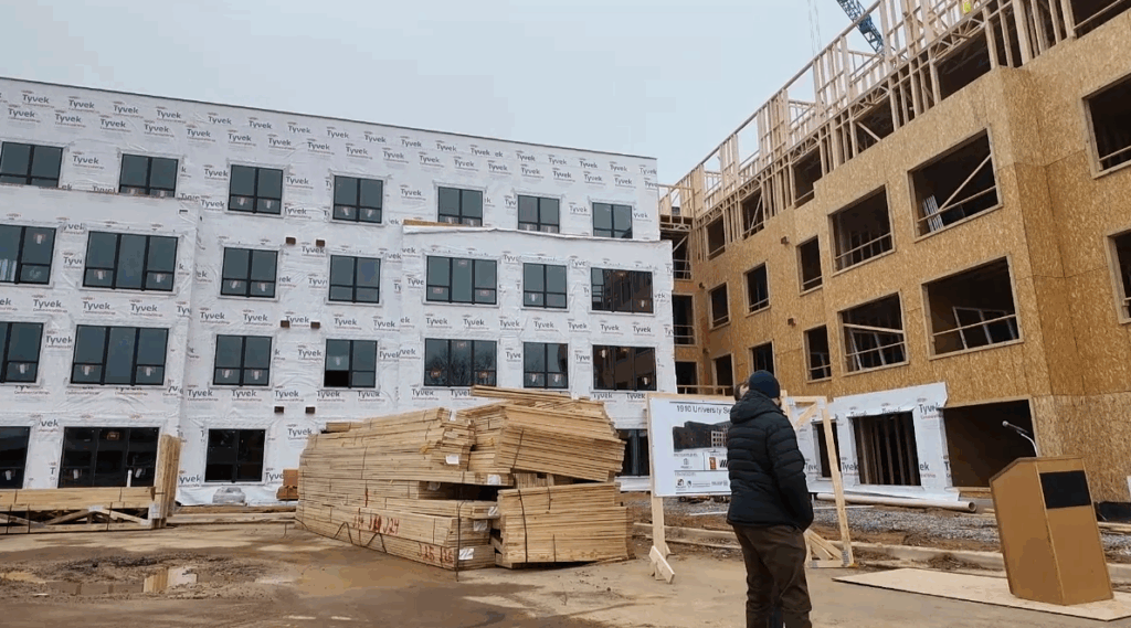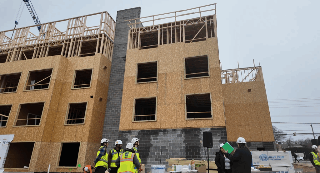 Although it won’t welcome its first residents until the fall of 2026, a “topping off” event was held Thursday for a 90-unit senior housing complex currently under construction on University Boulevard West in Wheaton.