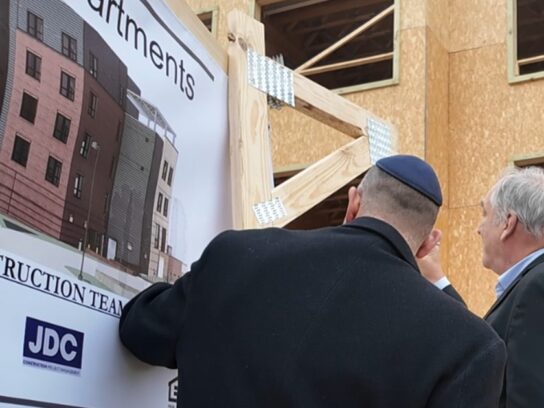 Many of those involved in the project signed their name and good wishes to wood that will be placed at the very top of the affordable housing development located next door to Congregation Har Tzeon-Agudath Achim synagogue.