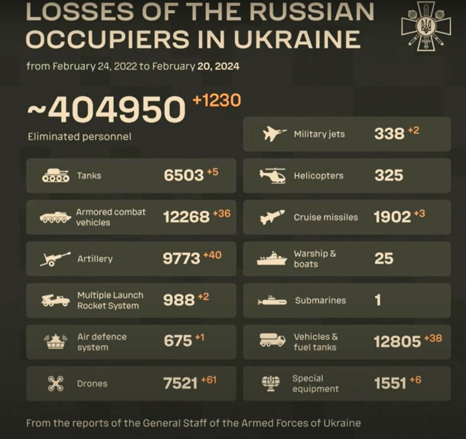 The 400,000 Russian killed and wounded in action (KIA/WIA) mentioned above in only two years is a figure about 10 times more than the estimated 40,000 casualties suffered by Russia in its catastrophic ten-year invasion of Afghanistan. According to The Economist, Russia lost only about 140 soldiers KIA per month in Afghanistan, but is losing an average of 5400 per month KIA in Ukraine! On many recent days, Russia has lost 1000+ soldiers PER DAY as KIA. The ratio of Russian to Ukrainian KIA is between 6 and 10 to 1 in rural fields combat, but this declines to 2 to 1 or even 1 to 1 in urban fighting.