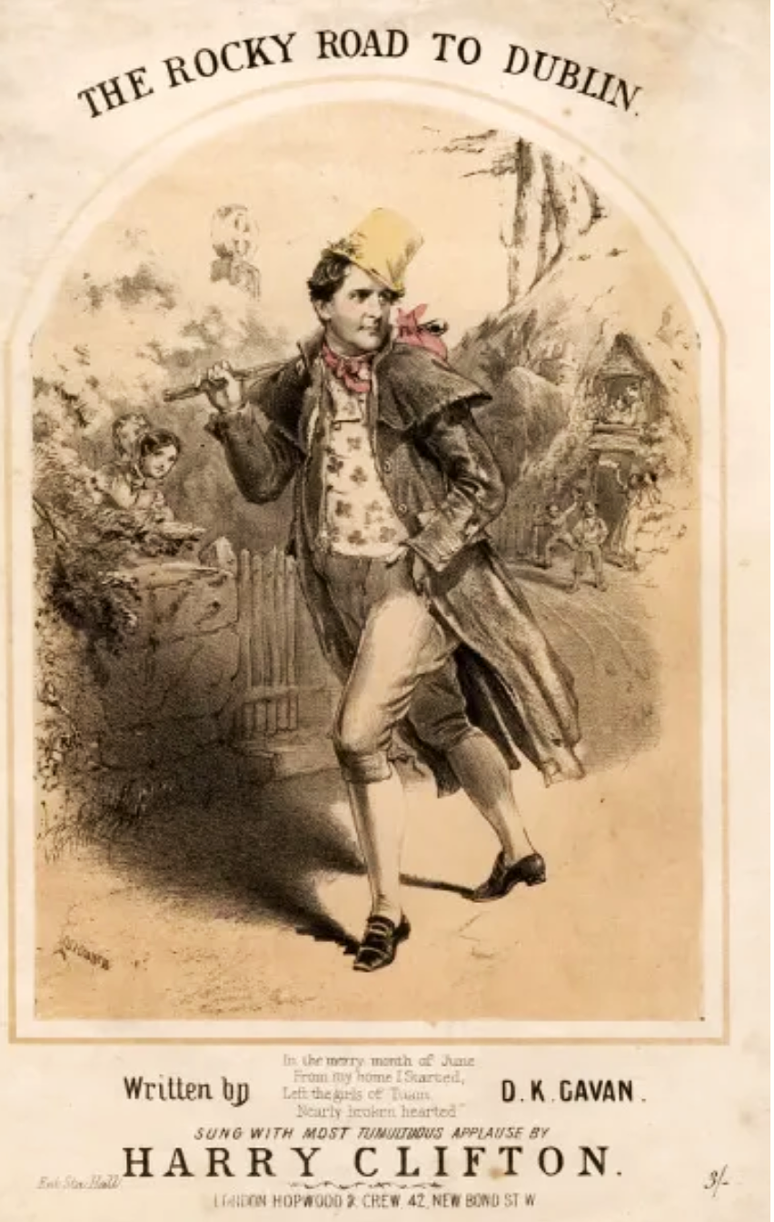 6. The original cover to the 1867 sheet music for “On the Rocky Road to Dublin.” This is not exactly how I envisioned my hero as I sang his song while on Camino! Do you think he has a beguiling “curious style”?