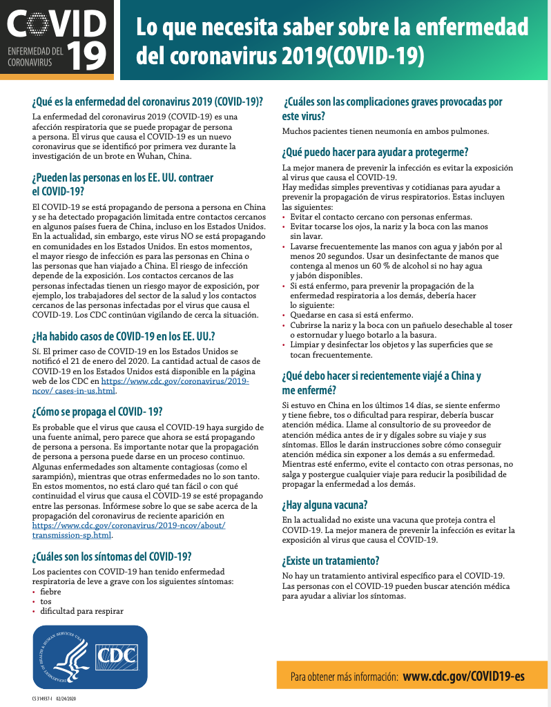 El sistema escolar está trabajando en estrecha colaboración con el Departamento de Salud y Servicios Humanos para obtener información sobre el virus y cómo responder cuando sea necesario. La información actualizada se publicará en esta página web de MCPS cuando esté disponible.
