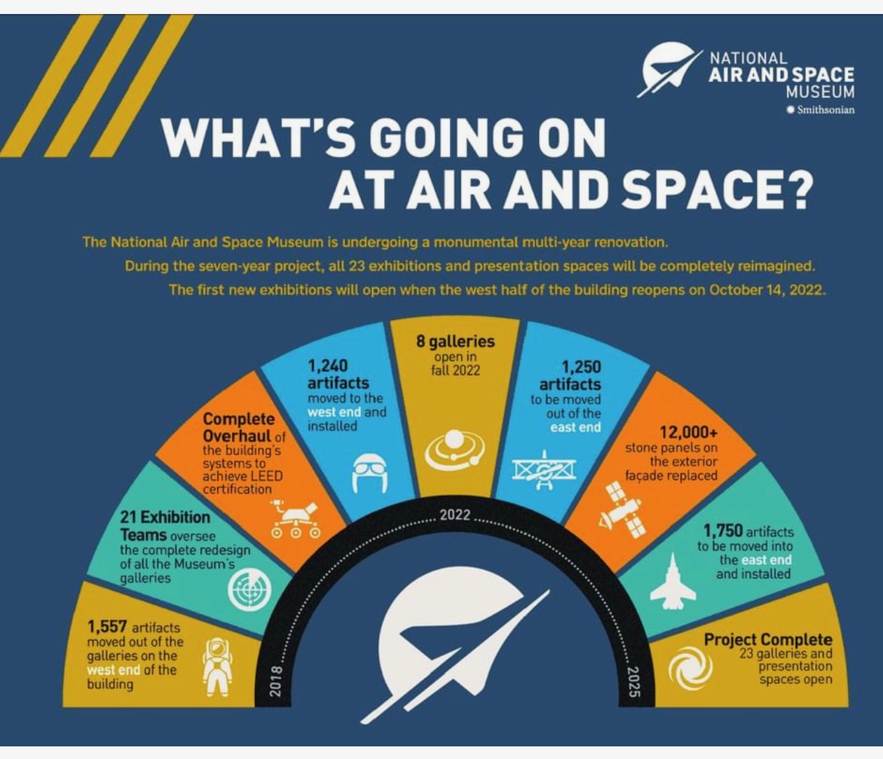 The costly renovation project, which began in 2018, is set to be completed in 2025, according to the Smithsonian. Every exhibit will be “reimagined,” said NASM Director Chris Browne. During a staff family event on Oct. 10, Browne noted the immense effort that continues to go into the construction project.