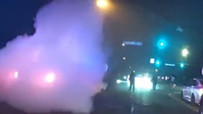 Police cruisers damaged during street takeover