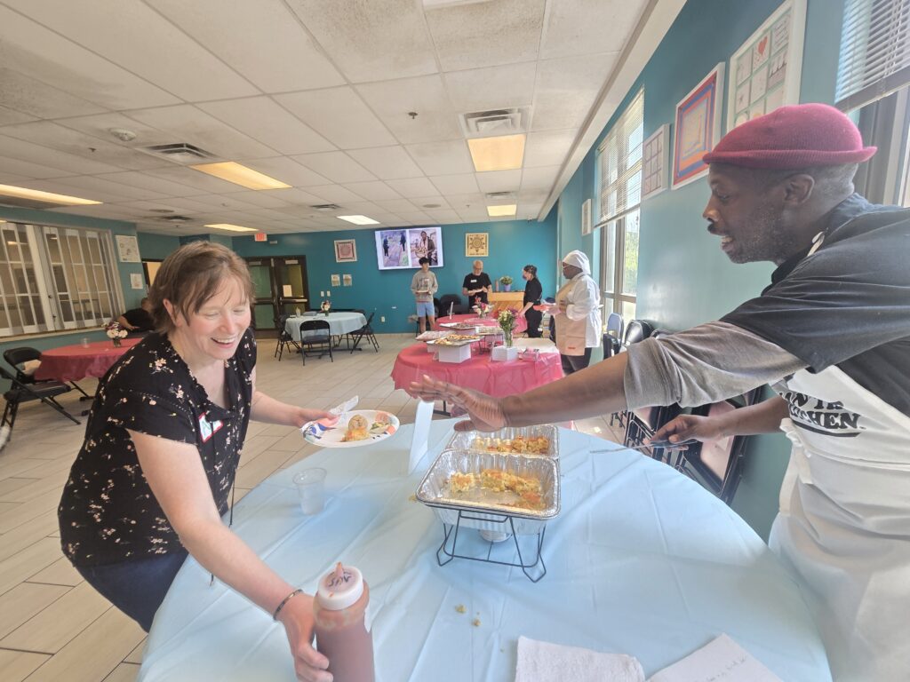 He had lived at Progress Place during the pandemic and attended a previous group’s graduation celebration. Now he was very pleased to be the one preparing and serving food.