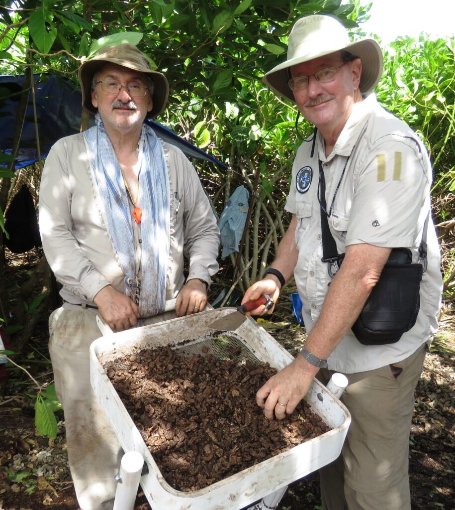 I. Author Lew Toulmin of Silver Spring and Arthur Rypinski of Rockville on Nikumaroro in 2017, searching through thousands of bits of coral that look like human bones, searching for the bones of Amelia Earhart.